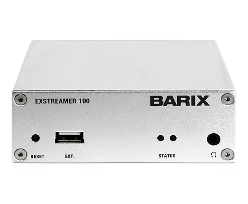 O Barix Exstreamer 100 recebe fluxos de dados via redes IP do tipo TCP, UDP, SHOUTcast, Multicast RTP e decodifica os arquivos recebidos em AACplus, MP3, Ogg Vorbis, G.711, PCM linear, para áudio analógico. Utiliza conexões desbalanceadas, com nível de linha, em conectores RCA.